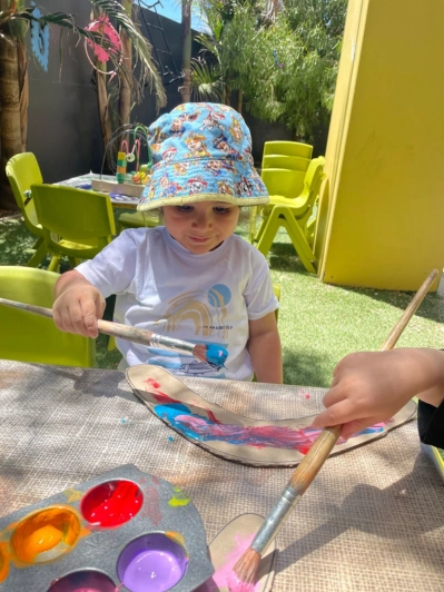 At Kids Haven, our outdoor area recently transformed into a vibrant open-air art studio. The sun was shining, the grass was green, and our little creators were ready to embark on a very special project: decorating their very own boomerangs!