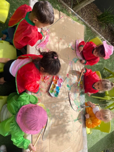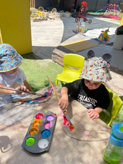 - Learning Together: Sitting side-by-side, the children practiced the important social skills of sharing brushes and taking turns with the paint. It was wonderful to see them encourage each other as their designs came to life.